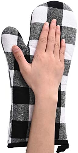 ✿HEAT RESISTANT – Thicker oven mitts and pot holders, heat resistant up to 392 F/ 200C. Well protect your hands and wrists from burns. Cotton and polyester inner liner,makes you feel comfortable,no stiff feeling.