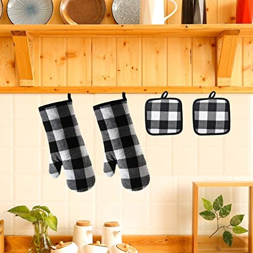 Win Change Oven Mitts and Potholders BBQ Gloves-Oven Mitts and Pot Holders with Recycled Cotton Infill Silicone Non-Slip Cooking Gloves for Cooking Baking Grilling (4-Piece Set) (Black/White)