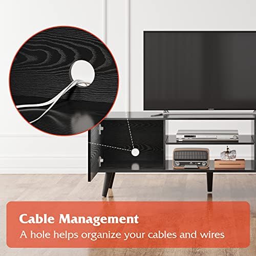 【CABLE MANAGEMENT】Holes in the back allow cables for various devices to pass through. Crafted from engineered wood, this wood TV stand is stable and durable, foot pads on the legs avoid scratching your floor.