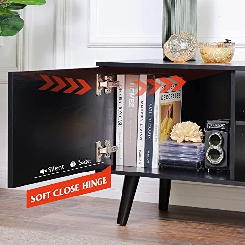 【LARGE STORAGE SPACE】Along with an open-layer frame, each black TV console with 2 storage cabinets is perfect for storing video games, remote controls and more, keep items orderly and organized.