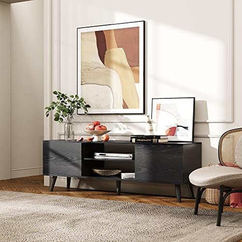 WLIVE Modern TV Stand for 55 60 inch TV, Entertainment Center TV Console with Storage Cabinets & Open Shelf, Media Console for Living Room, Black