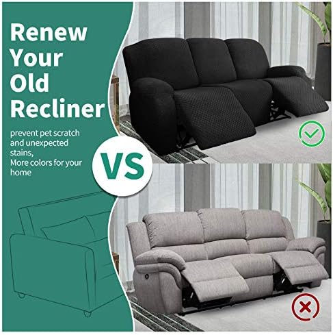 YEMYHOM 8 Pieces Stretch Recliner Sofa Cover Latest Jacquard Reclining Couch Cover with Side Pocket Anti-Slip Fitted 3 Cushion Furniture Slipcovers with Elastic Bottom (Sofa Recliner, Black), Large
