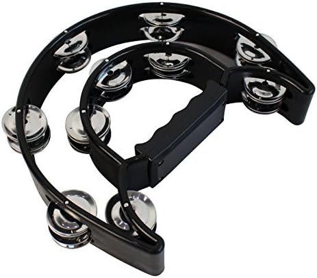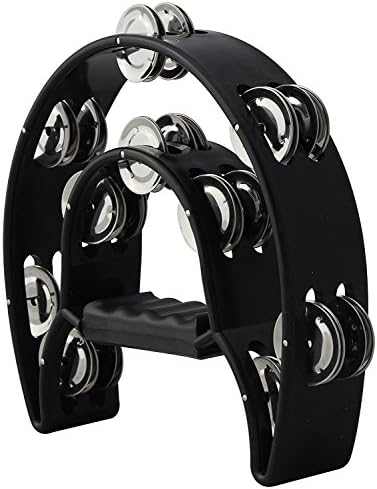 YMC TAM20-BLACK Double Row Tambourine – Metal Jingles Hand Held Percussion Ergonomic Handle