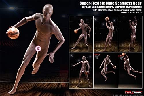 ZSMD Phicen 12″ Male Seamless Action Figures-Realistic Silicone Body with Male Genitals -1/6 Scale Super Flexible Male Figure Dolls for Arts/Drawings/Photography (M36-B (Black))